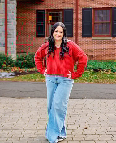 Outside of her senior pictures, Abby stays busy with babysitting and has a strong interest in the medical field. She loves shopping, cute coffee shops, going to concerts, and is especially excited for when she turns 18 so she can head to Philly for even more concerts. As she wraps up her senior year, Abby is more than ready for graduation and is currently waiting to hear back from several colleges across Pennsylvania before deciding where she will be headed next.