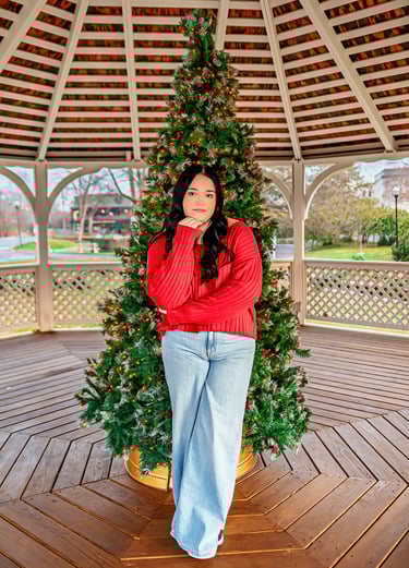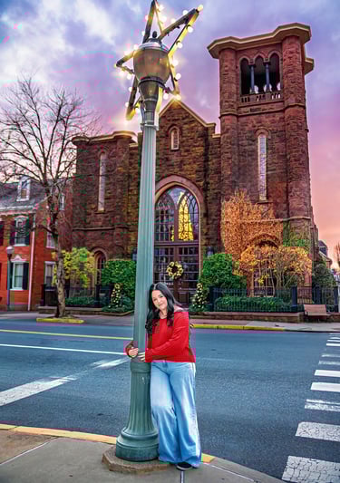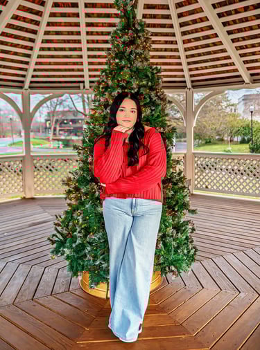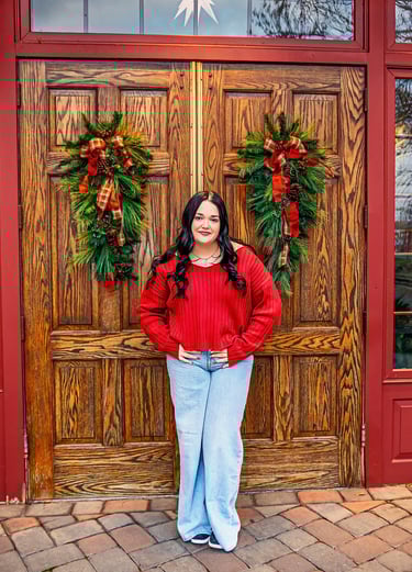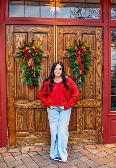 With the session moved to December, we decided to lean fully into the season and decided on a festive, holiday inspired senior session. Downtown Lititz was the perfect choice, especially with its charming streets, glowing lights, and small town feel. As a Lancaster PA senior picture photographer, I love how walkable Lititz is; there are plenty of unique backdrops that you can find within just a few blocks.