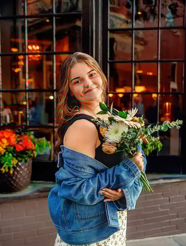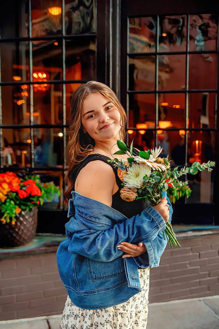 Arabella’s senior session took place in mid-October, right in the heart of downtown Lancaster. When we were planning her session, she mentioned wanting that downtown feel, something with a mix of charm, color, and character, so we met at Central Market and explored the nearby streets. The combination of brick backdrops, colorful storefronts, beautiful murals, and soft evening light made the perfect setting for her photos.