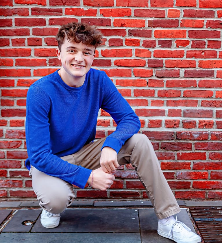 Sitting poses are a classic choice for senior pictures, and they’re super versatile. You can sit on steps, a bench, or even directly on the ground. Keep one knee up, lean back slightly, or rest your hands on your knees to mix it up. Whether you’re aiming for laid-back or sharp and polished, we’ll tailor the sitting pose to match your vibe.